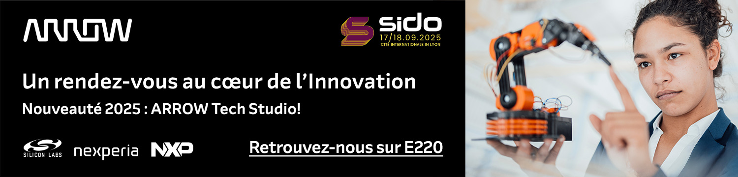 ARROW Electronics est un leader mondial dans la fourniture de produits, services et solutions destinés aux secteurs industriel et commercial, notamment dans les domaines des composants électroniques et des technologies de l’information pour les entreprises. En 2024, l’entreprise a réalisé un chiffre d’affaires de 27,9 milliards de dollars. Arrow collabore avec plus de 125 000 fabricants d’équipements d’origine (OEM), sous-traitants et clients professionnels à travers un réseau mondial de plus de 465 sites implantés dans plus de 90 pays. Les équipes d’Arrow France accompagnent leurs clients à chaque étape de leurs projets, en leur apportant un support technique de proximité, des conditions tarifaires optimisées et une gestion efficace de la livraison des composants. Comme Nouveauté SIDO 2025, Arrow France inaugure son premier ARROW Tech Studio, un espace d’échange dédié à vos projets. Venez y rencontrer nos experts en processeurs, solutions analogiques, connectiques et électromécaniques. Discutons ensemble de vos idées et de vos besoins ! Dans cette espace convivial, 4 de nos experts techniques, plus 80 ans d’expérience à eux 4, accueillerons nos visiteurs. Notre équipe pourra les orienter vers nos meilleures solutions à travers les 400 fournisseurs que nous supportons techniquement. NXP, SILCON LAB, NEXPERIA, nous accompagnent au SIDO et à quelques pas de notre Arrow Tech Studio, ils seront en mesure de vous proposer le composant qui fera la différence ! Que ce soient des composants électroniques actifs, des éléments passifs, des connecteurs, des modules, des câbles, des alimentations, et même des ventilateurs notre équipe et nos partenaires vous conseilleront avec pertinence. Si votre besoin nécessite une étude plus complète, nous prendrons rendez-vous pour vous rencontrer plus longuement sur votre site. N’hésitez pas, venez nous rencontrer stand E220 au SIDO 2025.